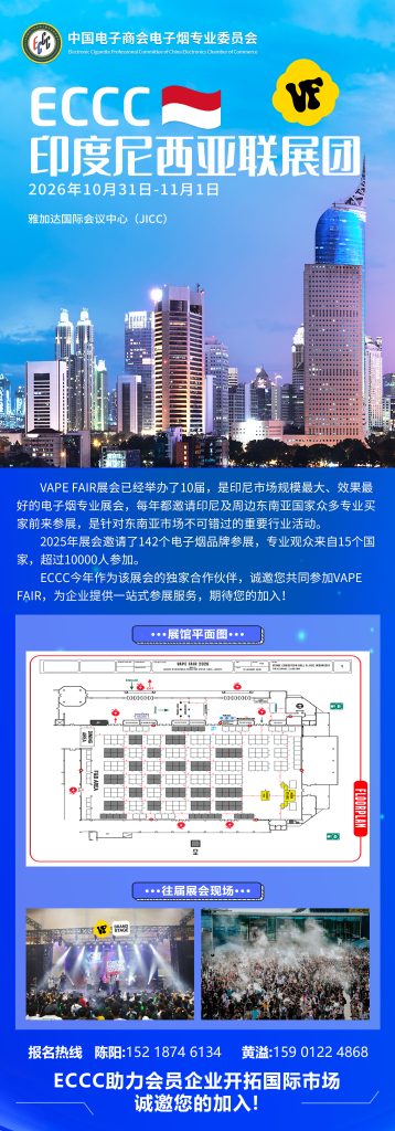 当前位置:首页规范发展2026年10月印尼雅加达电子烟展VAPE FAIR